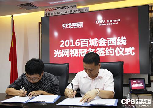 【CPS中安网 cps.com.cn】从2012年到2015年,由CPS中安网承办的百城会至今已成功举办了4届。2015年5月23日百城会北京站的落幕,意味着2015百城会东线也圆满结束。百城会所到之处皆在当地引起了深远影响和广泛的讨论。而为了更好地推广新产品和技术,2016百城会西线冠名商光网视科技拔得头筹。这也是继2014年百城会后,光网视再一次加盟百城会。6月9日下午,在CPS中安传媒举行了光网视冠名2016百城会西线的签约仪式。