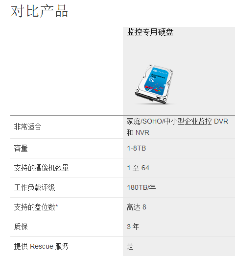 容量高达 8TB,每个硬盘支持 64 台摄像机,每个系统有 8 个以上的硬盘1