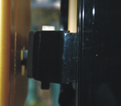 10、 有限防风功能:当门体全关时,机头防风钩与防风钩座自动咬合,在防止门排被风吹倒上能起到一定的防范作用。