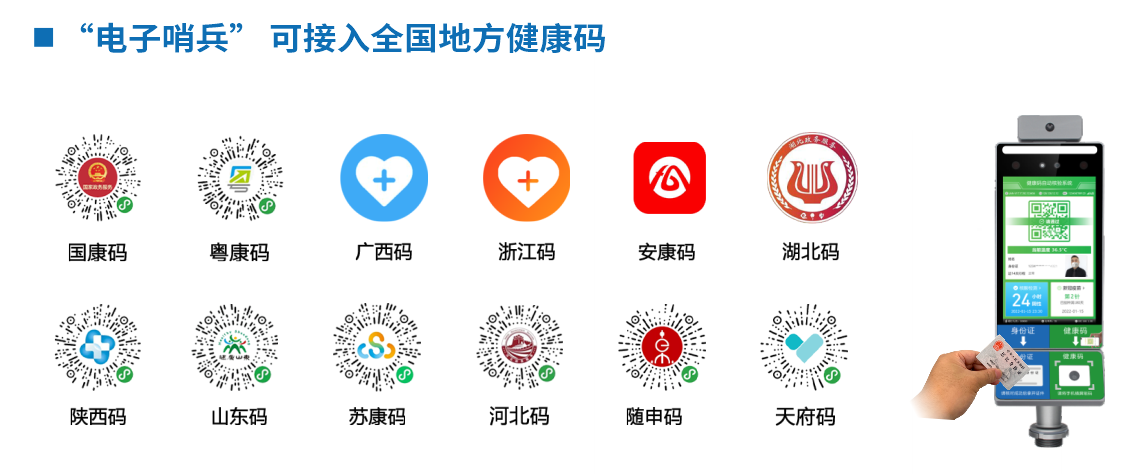 人脸防疫“电子哨兵”系列 ❒ 人脸+口罩精准识别,实现非接触式体温检测、快速筛查、自动告警以及自动检测口罩是否佩戴提醒功能 ❒ 支持全国20多个省市健康码 ❒ 刷身份证出健康码 ❒ 核酸24小时或48小时数据 ❒ 中高风险行程人群预警 ❒ 与管理平台数据对接 ▲ FRT343H 4G扫码盒子 刷身份证/健康码出健康码状态 ❒ 全程自动识别健康码,通过语音自动播报; ❒ 对于黄码、红码语音区别提示,数据可上报平台; ❒ 可识别假健康码,协助健康码防伪(对旧截图健康码,会查询最新健康码状态); ❒ 开机即用,自动网络、自带电池; ❒ 4G联网,带流量卡,开箱即用; ❒ 电池供电,可在应急情况下使用; ❒ 带锁控功能,可以与门禁闸机连接。 Lora无线指纹门锁 产品特点 开锁方式:钥匙、指纹(可选)、密码、刷卡(支持M1卡)、远程开门。 权限容量:100张卡、100组密码、300枚指纹 产品颜色:咖啡金、星空黑。 产品材质:铝合金 电源配置:4节5号干电池。 外形尺寸:150*146mm。 电池续航:正常使用情况下,10个月。 工作环温:-20℃~55℃。 通信方式:Lora 通信距离:50米 使用场景:隔离酒店、酒店、公寓、出租屋 适用门厚:38~60m 面对应对疫情期间的防控需求,达实借助科技的力量为疫情防控再加一把“安全锁”。既为遏制疫情提供了高效的技术支撑,也开拓了社会力量参与疫情防控的新路径,充分彰显企业责任和社会价值。