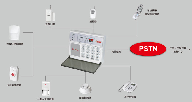 通过电话网(PSTN)拨号传送报警信号
