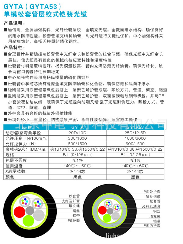 中电一舟推荐6芯单模GYTA-6B1松套管层绞式铠装光缆