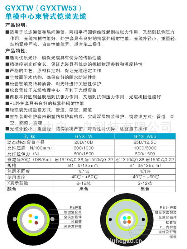 中电一舟销售8芯单模GYXTW-8B1中心束管式铠装室外光缆