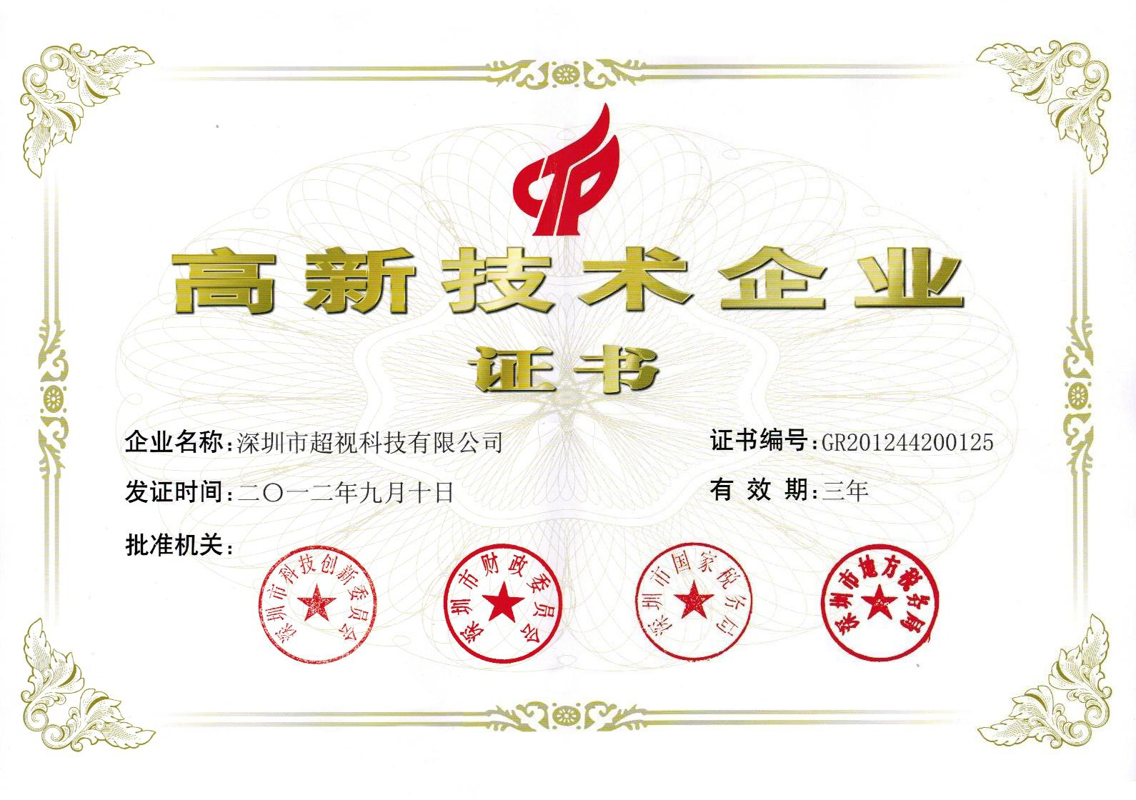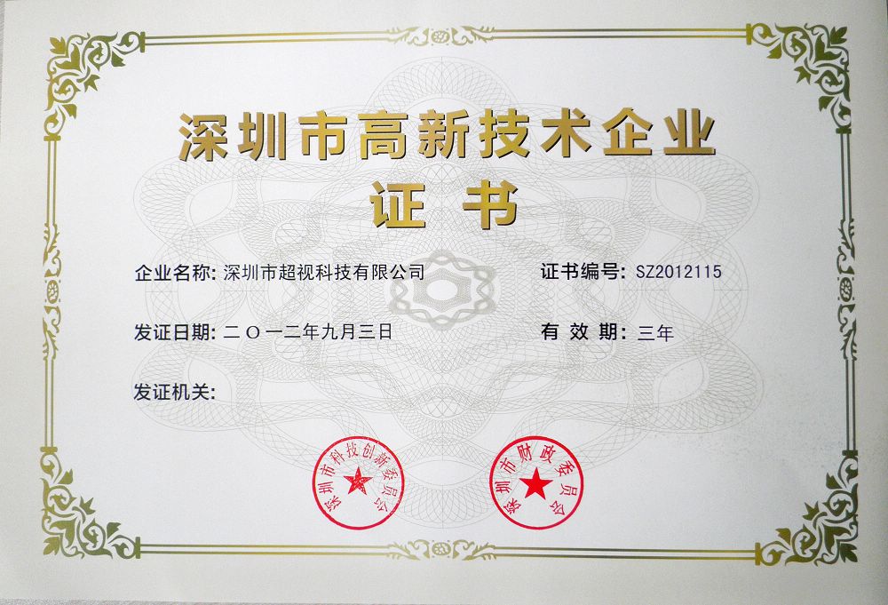 深圳市高新技术企业证书