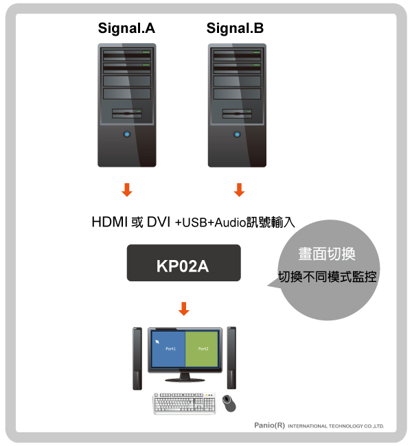 Acafa KP02A 2口 档案传输分割画面 HDMI / DVI KVM切换器