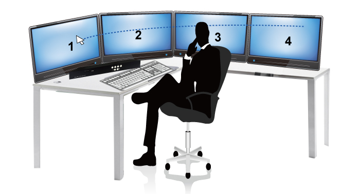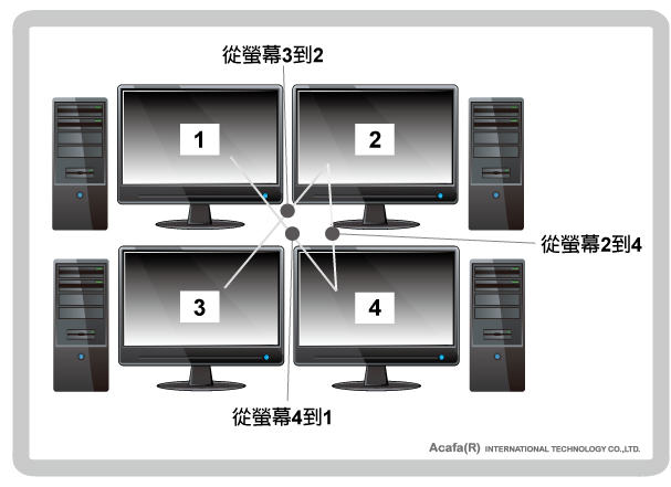 实现一套键盘、鼠标无缝跨屏幕操控4台不同PC系统.