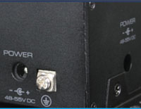 2) 左面板和后面板分别有一个DC48V~57V电源输入:默认配置1个120W电源适配器,平均每个端口PoE输出功率15W,最高可输出30W;如果需要每个端口都输出30W,需要另外选购