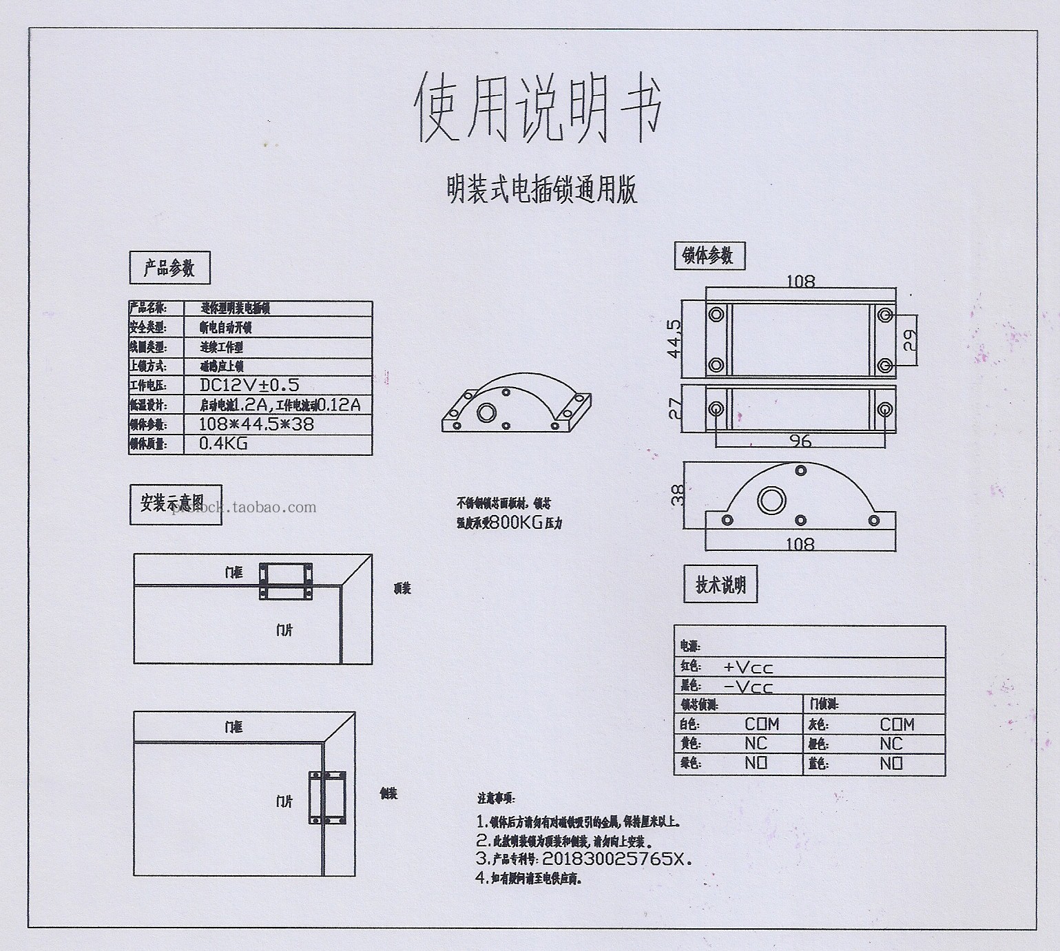 明装电插锁