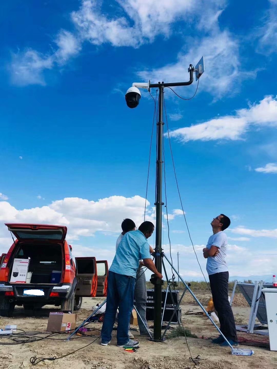 由于此类桅杆属于轻便型结构,无固定连接地面的部件,缸体直径也较小,因此使用中需要注意负载物的重量和体积,以及使用环境。我们在支撑架桅杆的撑腿上设有地钎孔或者地脚板,客户可以实际需要决定是否配置有地钎和纤绳。在风力较大的天气使用时,建议采用地钎和纤绳固定的方法,以提高其稳定性,减少不安全因素。