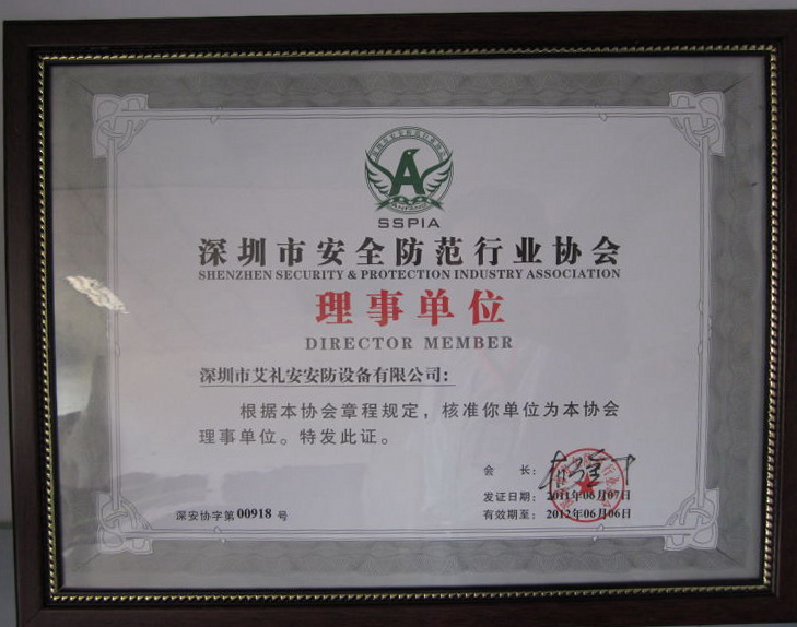 深圳市安全行业协会证书