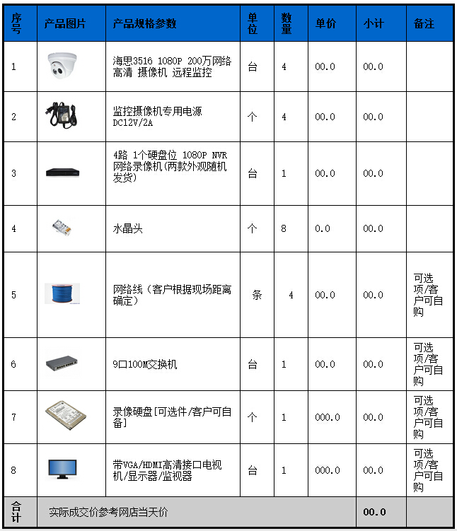 1080P 4路视频监控套餐 家用专用监控套餐 网络高清监控套餐