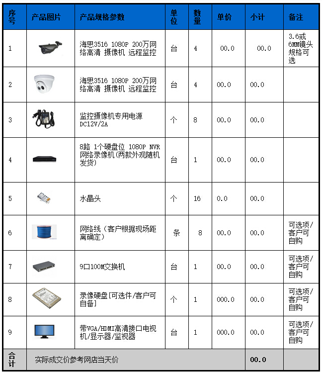 1080P 8路视频监控套餐 网络监控套餐 家用监控套餐