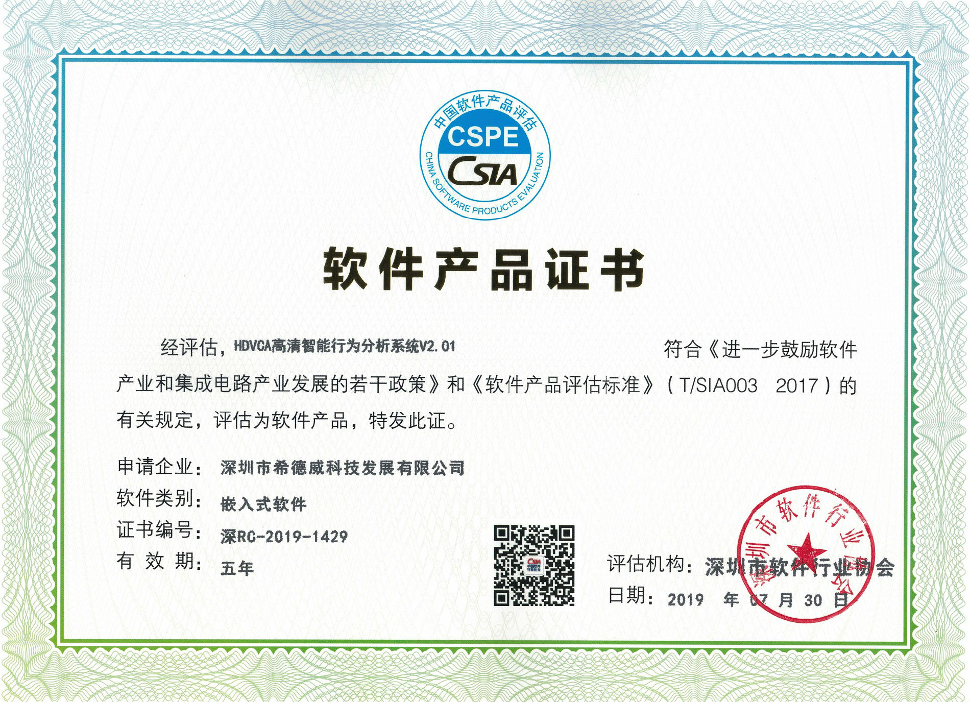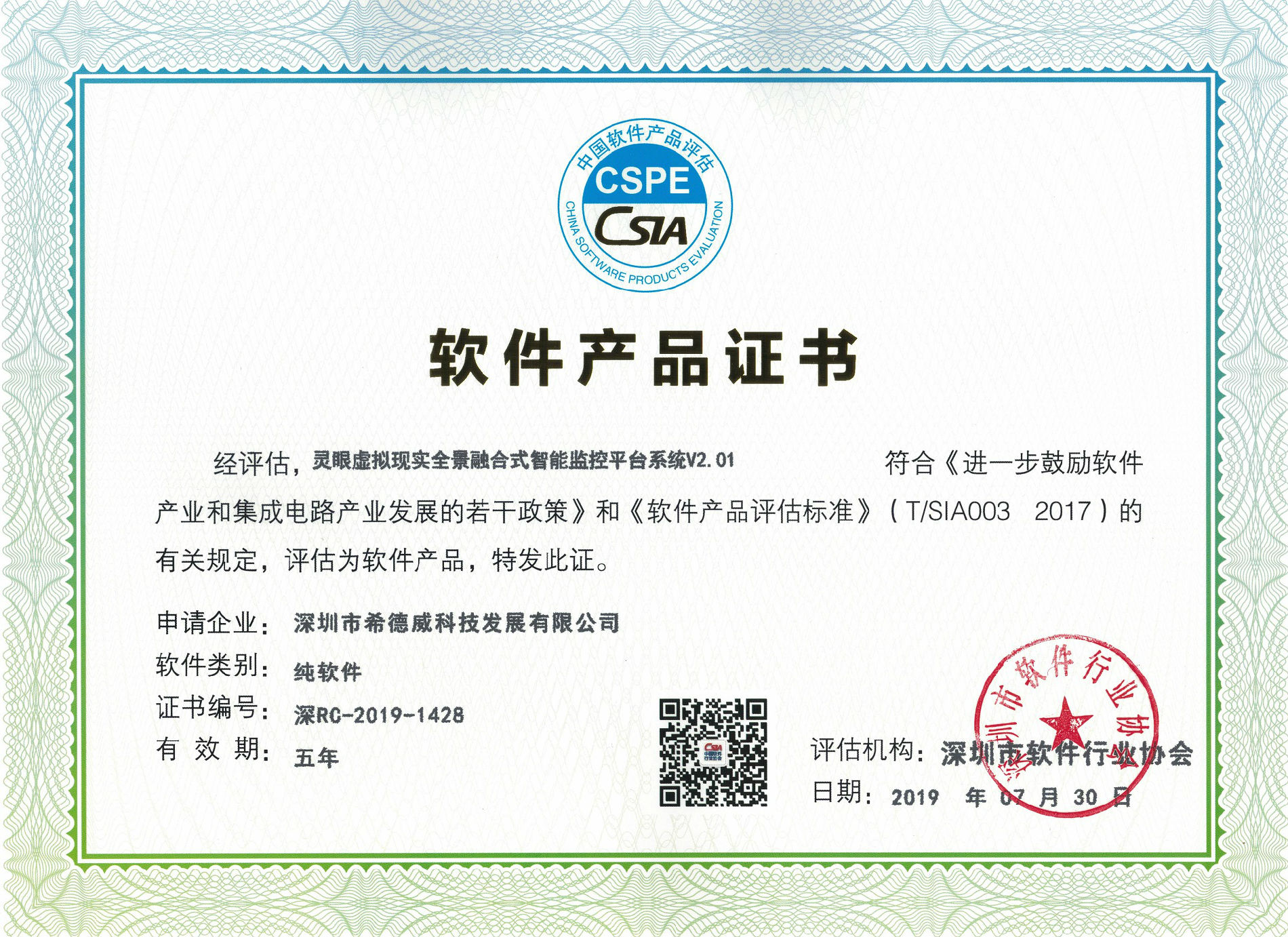 公司高清智能分析系统及灵眼智控平台通过纯软件认定并获得软件产品证书!