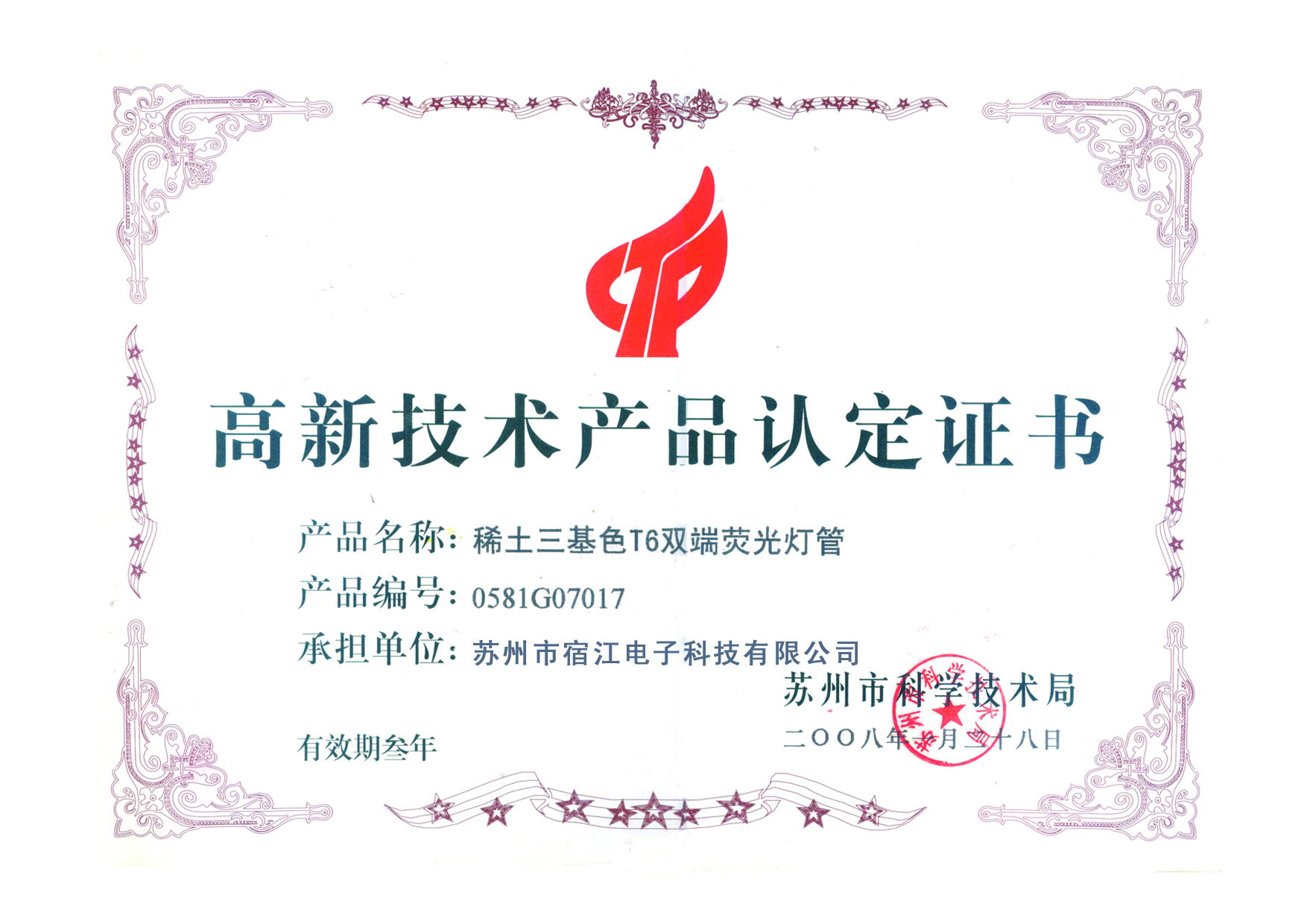 高新技术产品认定证书