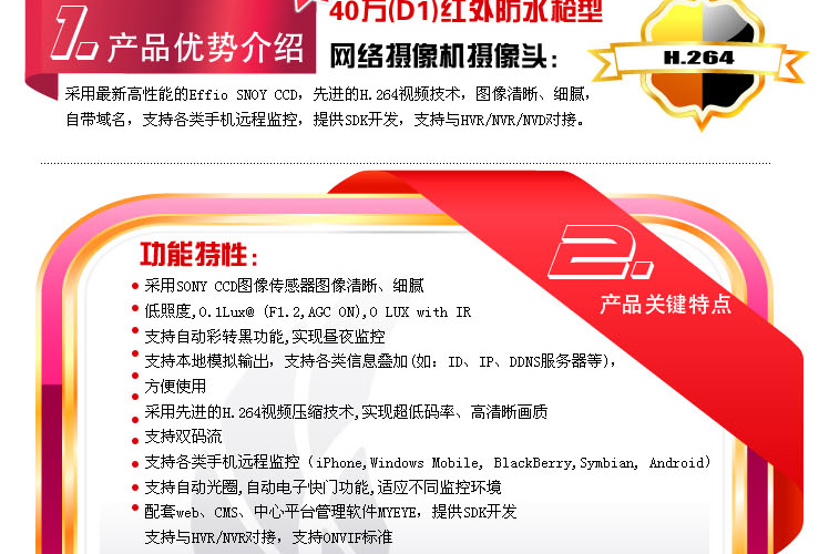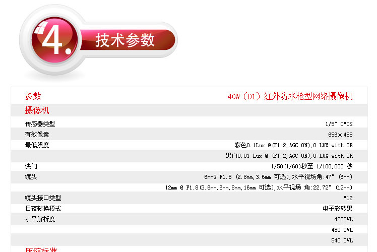 40万(D1)红外防水枪型 网络监控摄像机 摄像头