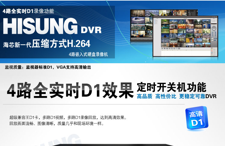 4路全D1硬盘录像机/H.264监控/手机网络/D1回放/定时开关