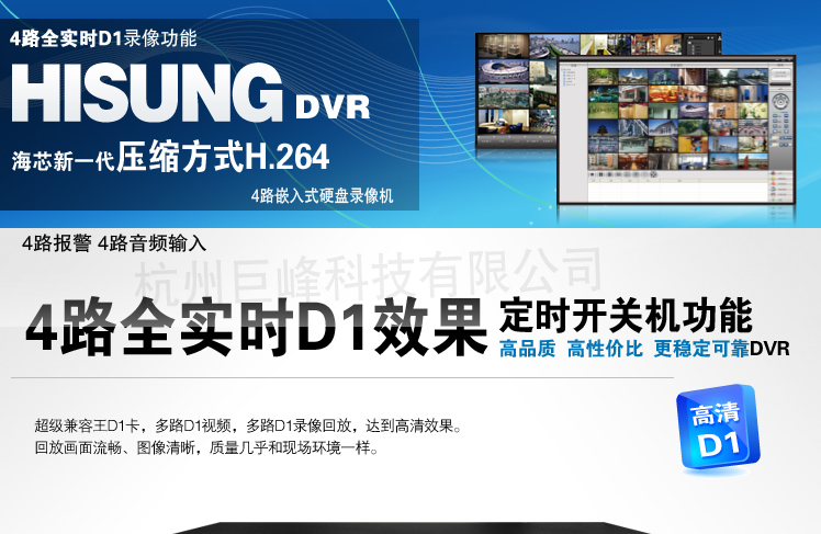 4路全实时D1硬盘录像机DVR /高清/手机监控/网络远程 /报警