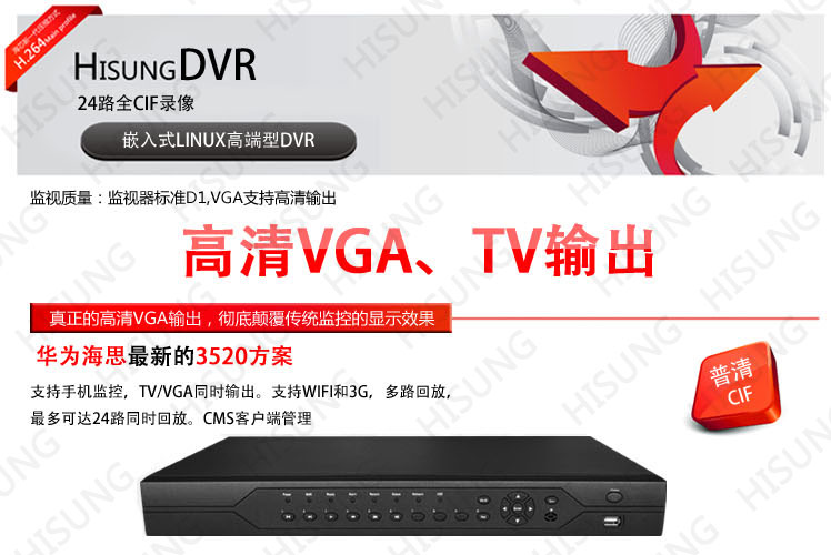 高清24路全实时CIF硬盘录像机DVR 音频 报警 3G wIFI