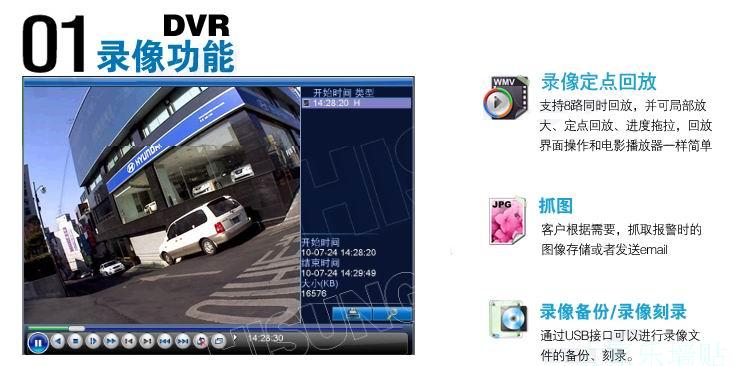 系统资源:同时多路录像,多路辅码流,多路回放,多路网络操作,USB备份,刻录