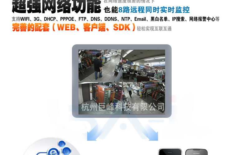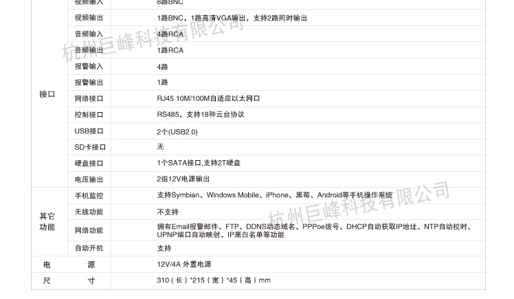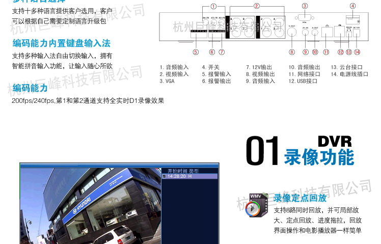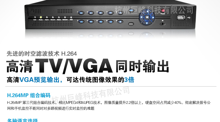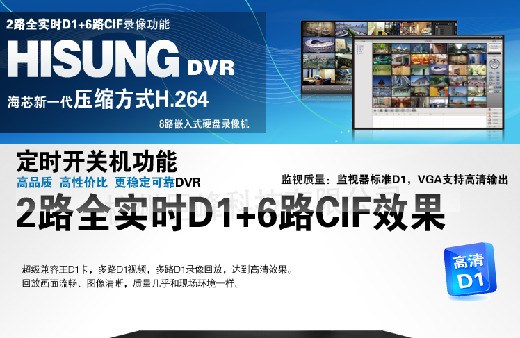 8路硬盘录像机DVR/H.264/高清D1录像/音频/报警/网络/手机