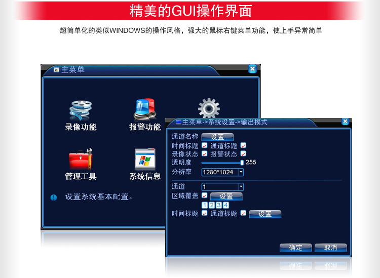 16位真彩色图形化菜单操作界面,支持鼠标、遥控器、按键操作 |