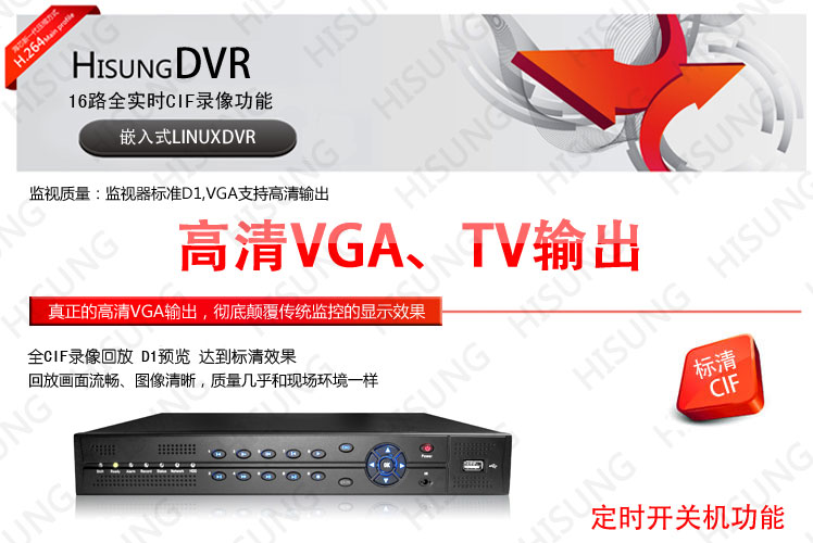 高清16路硬盘录像机DVR/D1预览/定时开关机 自带域名