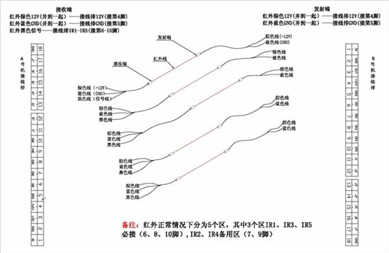 红外对射接机芯线如下