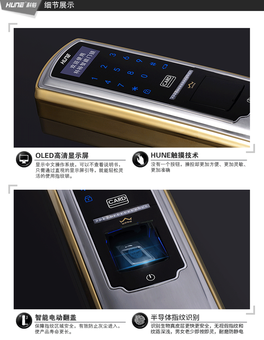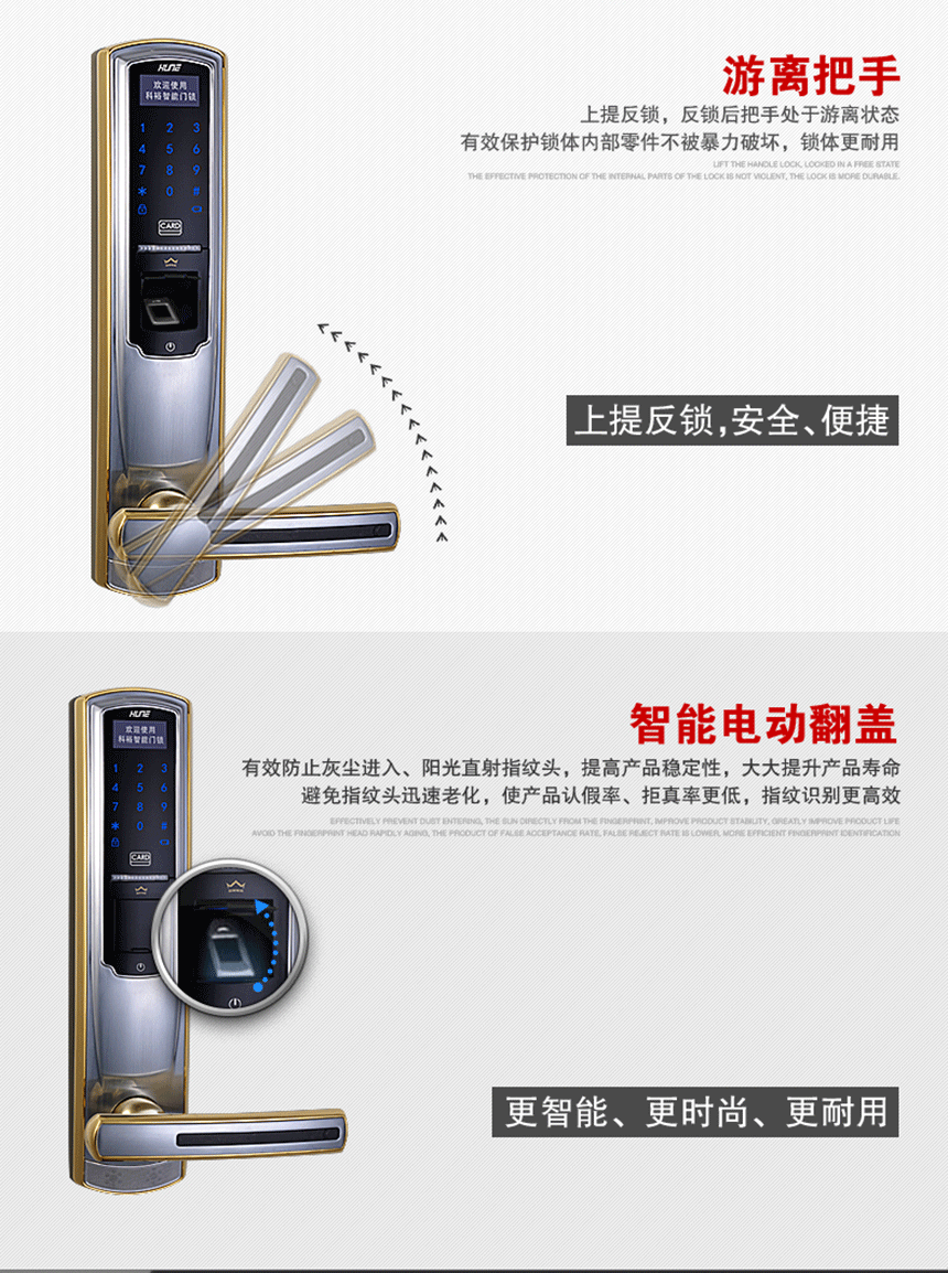 自动翻盖+指纹+密码+感应卡功能(APP)豪华多功能系列指纹锁918-5-F(APP)