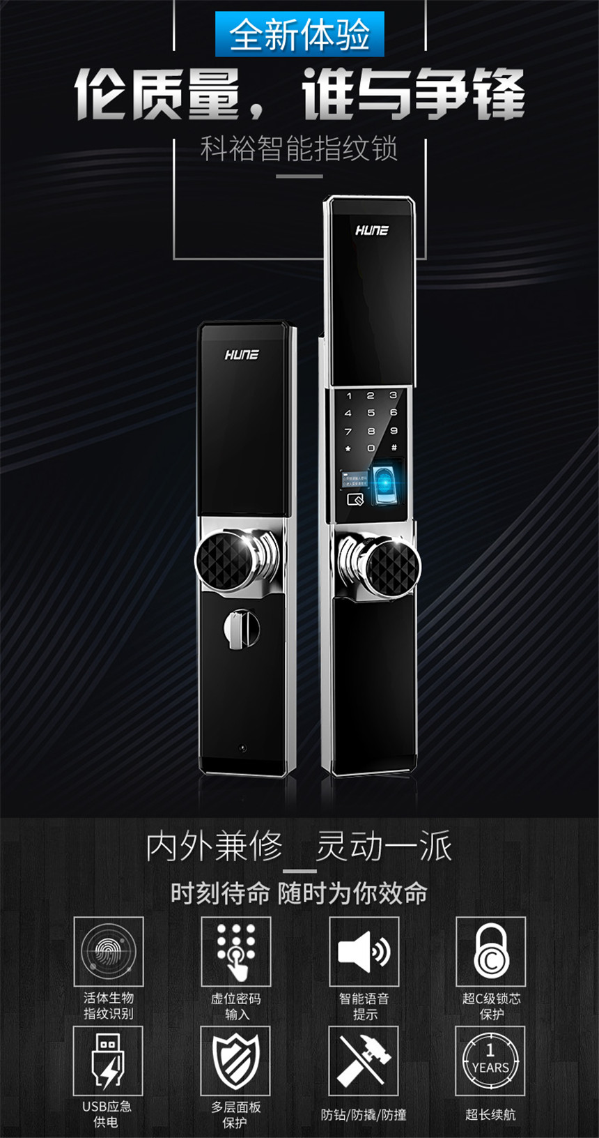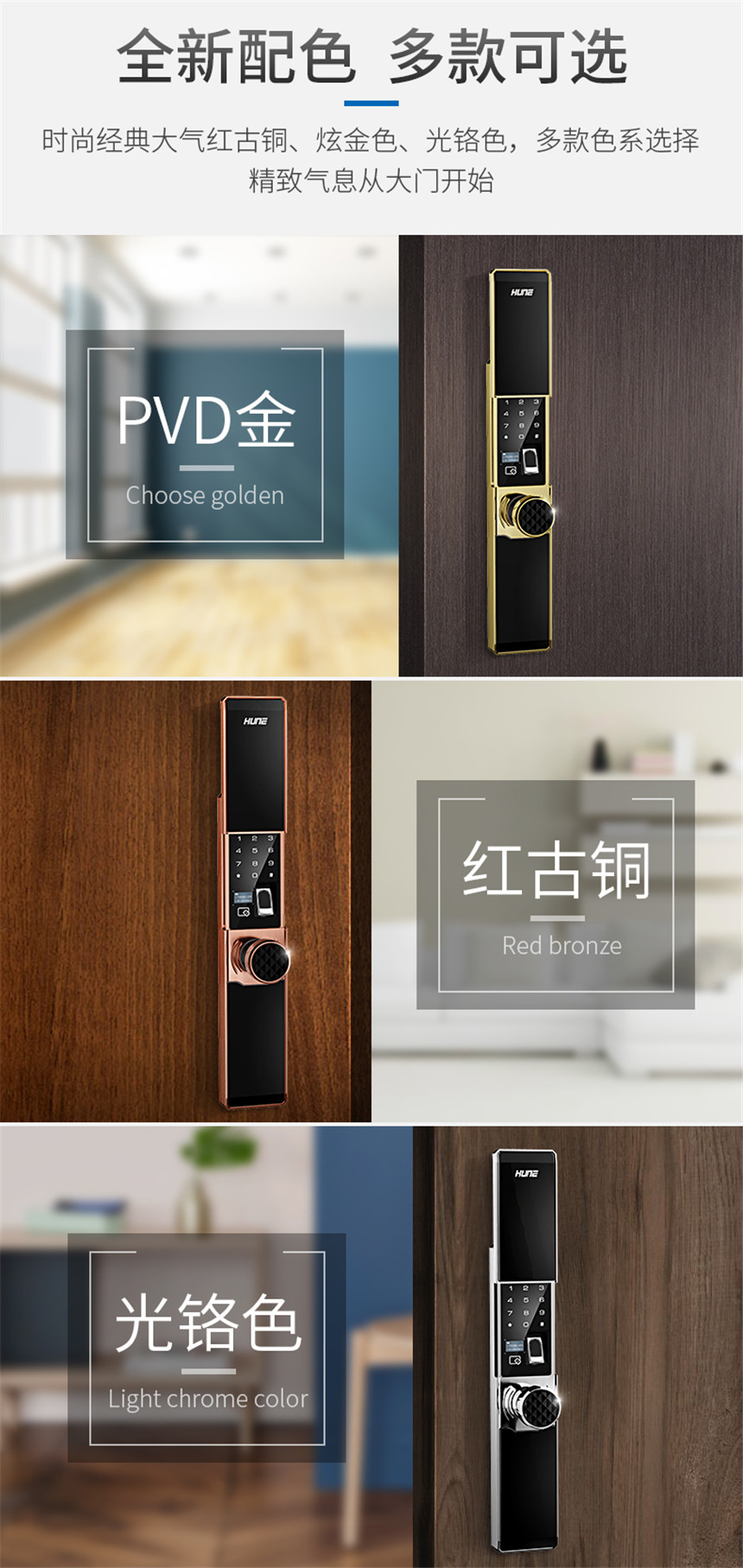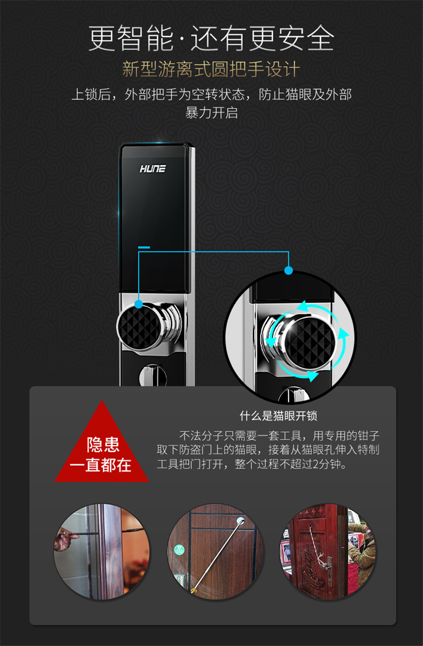 性能卓越,低调奢华圆形把手智能锁指纹锁密码锁8000-F