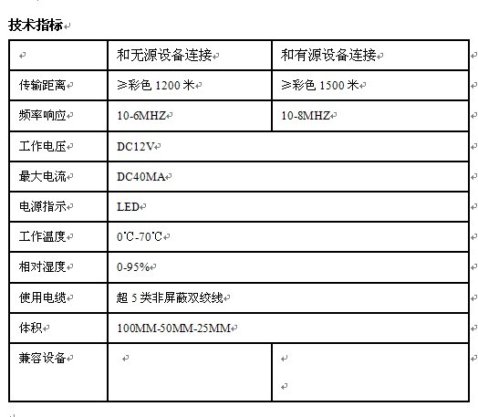 1、单路有源彩色传输距离1200米,接收有源发射无源。