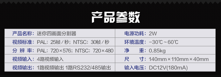实现多台分割器操作 迷你四画面分割器带RS232/485串口控制功能