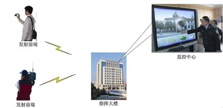 传到指挥车或者飞机上,车上可以根据前端传回的图象快速处理,同时可以把前端图象传回指挥中心。
