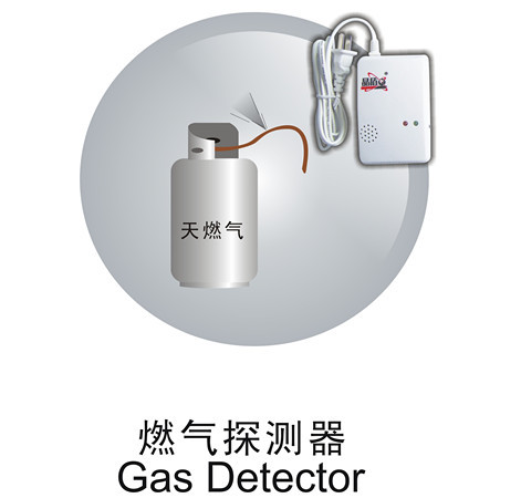 无线燃气探测器:感应到燃气泄露时触发主机报警。220VAC,发射频率: