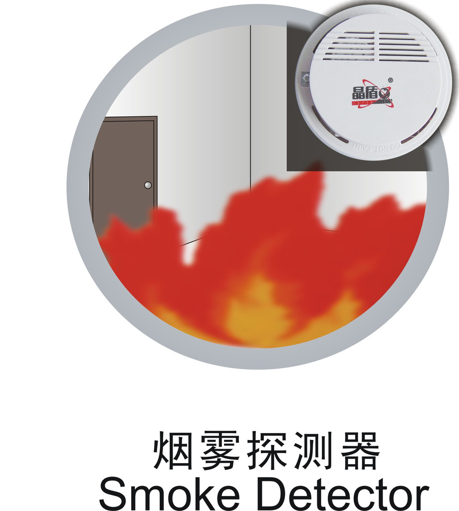 无线烟雾探测器:感应烟雾浓度超标时触发主机报警。9V叠层电池供电,静态电流≤10uA,