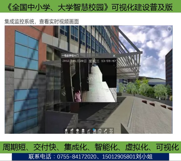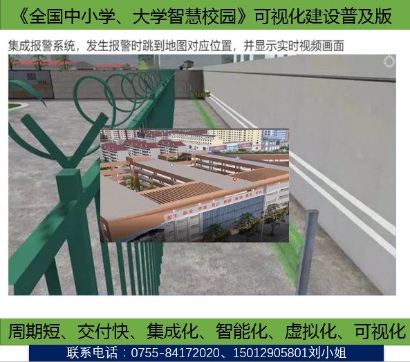 可视化智慧校园管理平台是智慧校园建设的核心部分,也是整个校园各智能化系统的监控指挥中心,为前端智能化系统的基础数据交互服务提供平台支撑,在校园2.5D电子地图上可对所有智能化终端进行可视化管理,简洁、高效。当在某区域发出火灾报警时,或当某区域发生打架斗殴事件时,可对该区域实现视频、灯光、显示屏联动,为校园物业管理人员提供应急指挥预案,提高校园管理人员应对突发事件的处理能力,真正做到统一监控、统一管理、联动告警、应急指挥。智慧校园综合管理平台包含但不限于以下基本模块:视频监控、周界防范、防盗报警、灯光控制、远程抄表、智能广播 、门禁一卡通、信息发布、数据仪表盘展示等模块,其中仪表盘用于实现对关键数据的统计、分析与直观展示,显示数据可进行个性化定制,将校园管理者关心的各项数据实时汇总显示(如当前校园学生数、当前校园教室数、当月安全事件数、当月校园能耗汇总等),供校园管理者决策参考