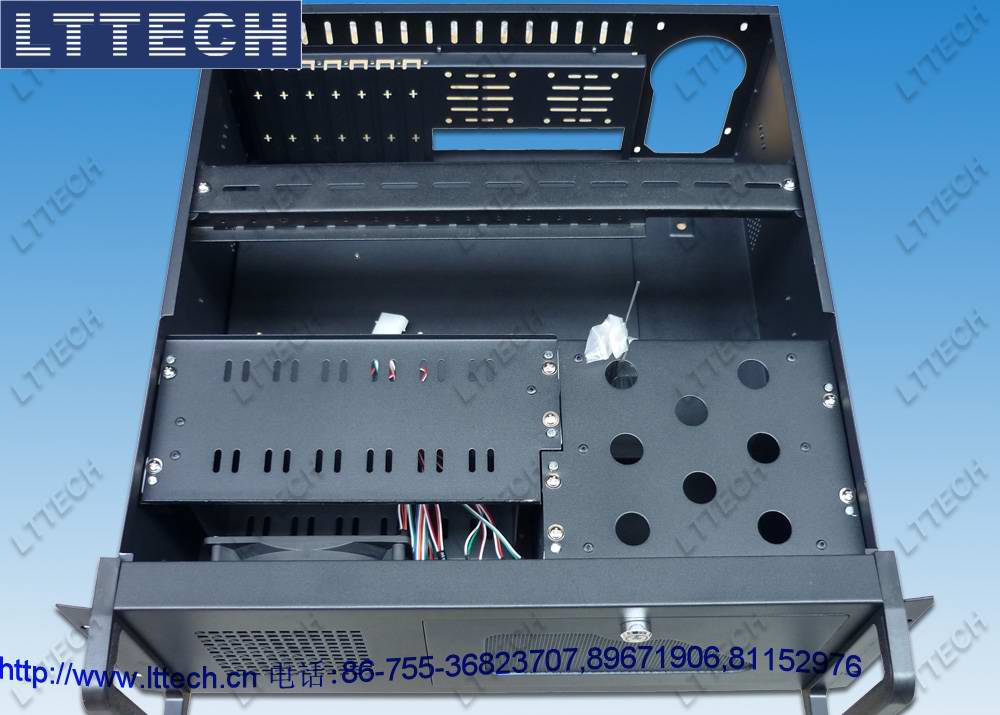 4u高度工业机箱,19"上架机箱,符合EIA-310C上架标准,支持多种ATX12"*9.6"普通商用电脑主板,支持6个3.5"硬盘,3个5.25"光驱,1个软驱驱动器空间,支持普通标准ps/2电源