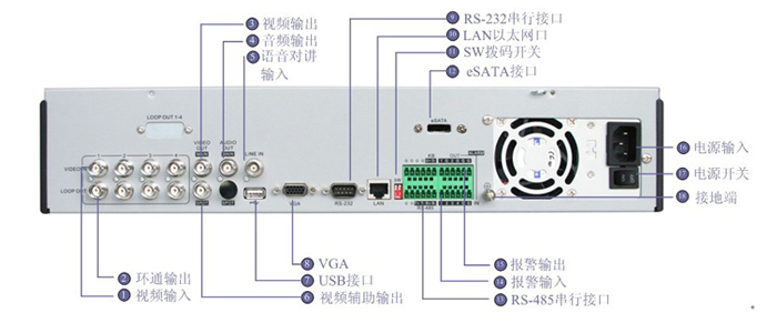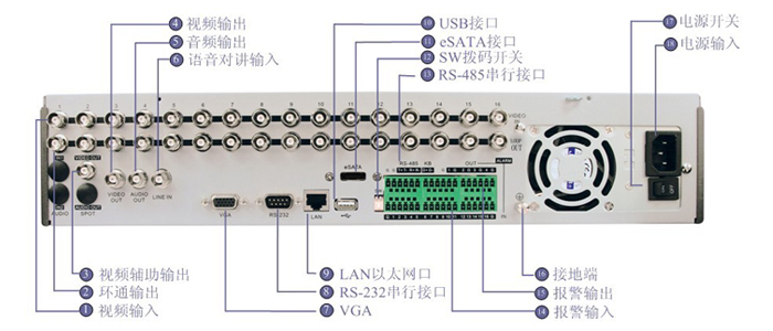 注:DS-8808H-ST后面板与DS-8816H-ST相似,仅视频输入为8路。