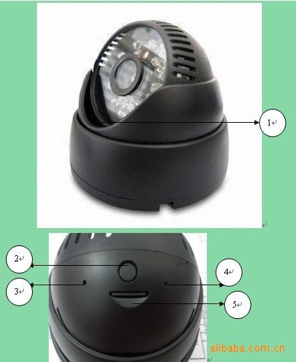 1.镜头的指示标:2.按键(取卡键):3.复位键 :4.指示灯 :5.TF卡