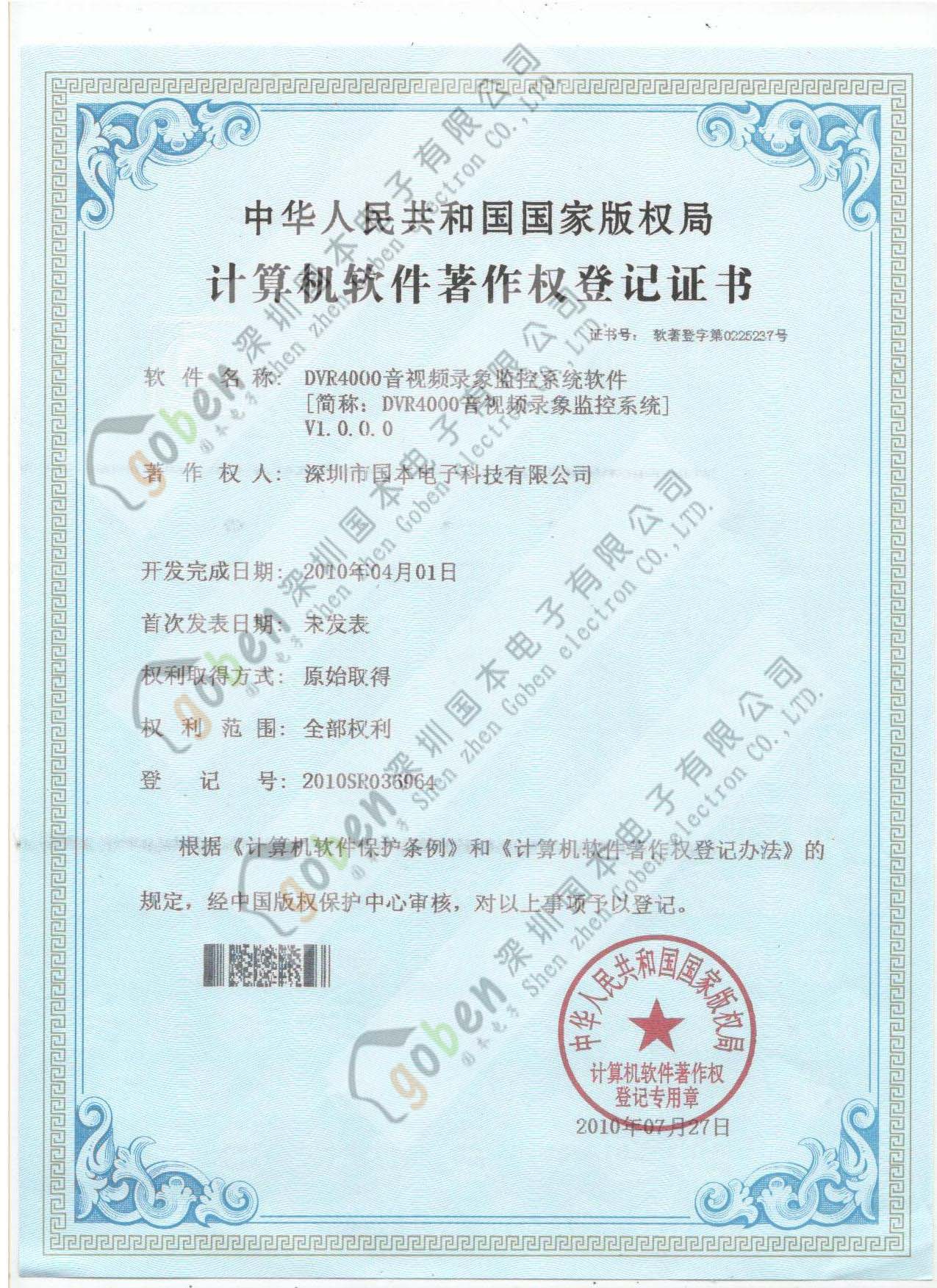 DVR4000著作权书