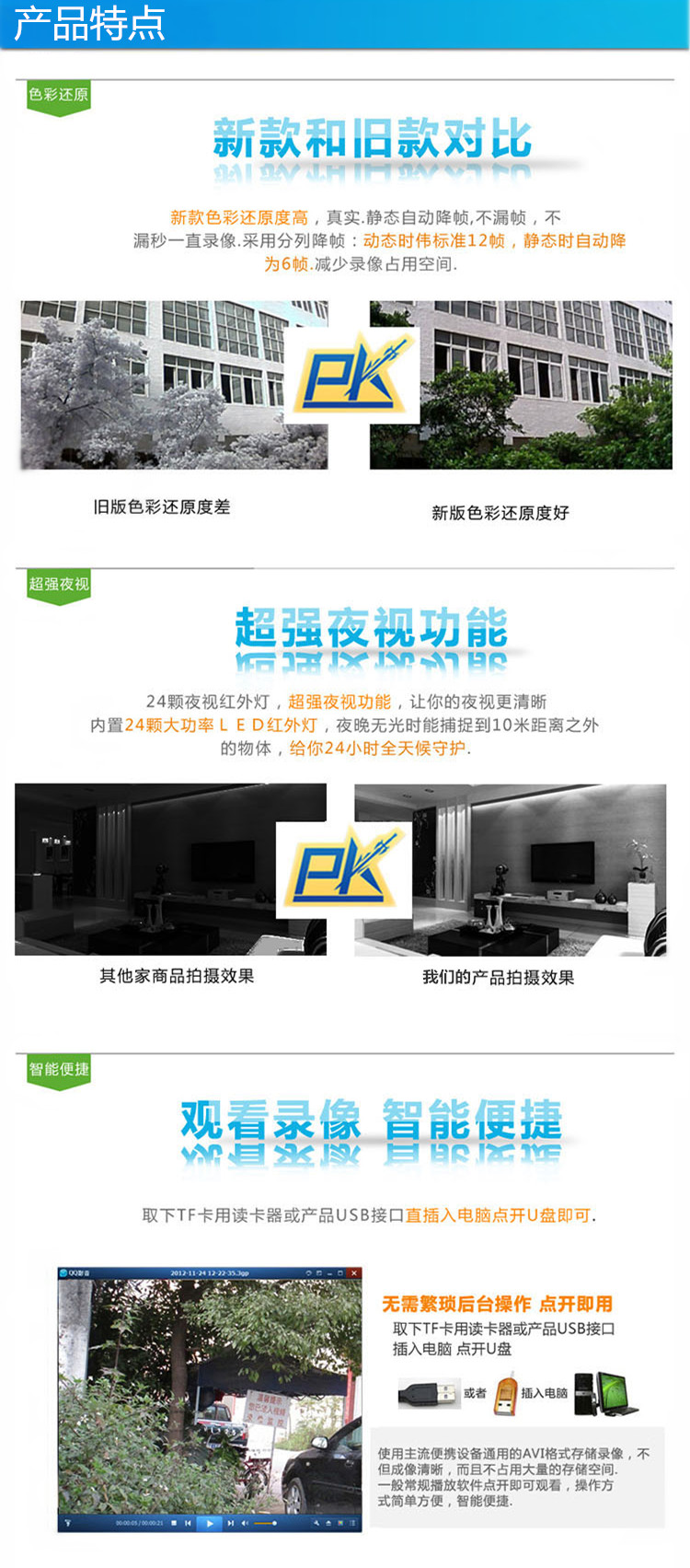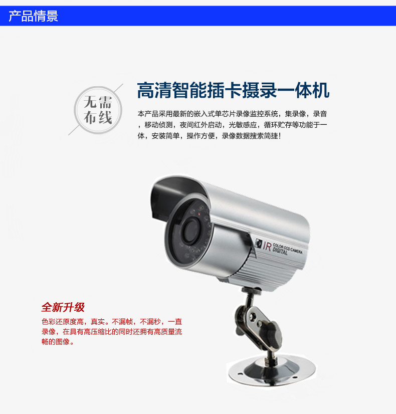 USB室外家用防盗插卡监控摄像头一体机TF智能摄录监控器夜视红外