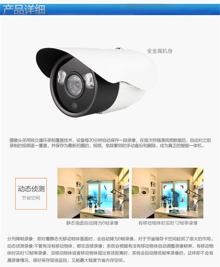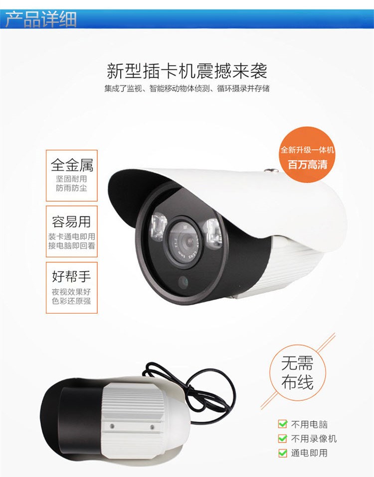 免布线 高清100万USB监控摄像头一体机 插卡监控头 TF卡摄像机