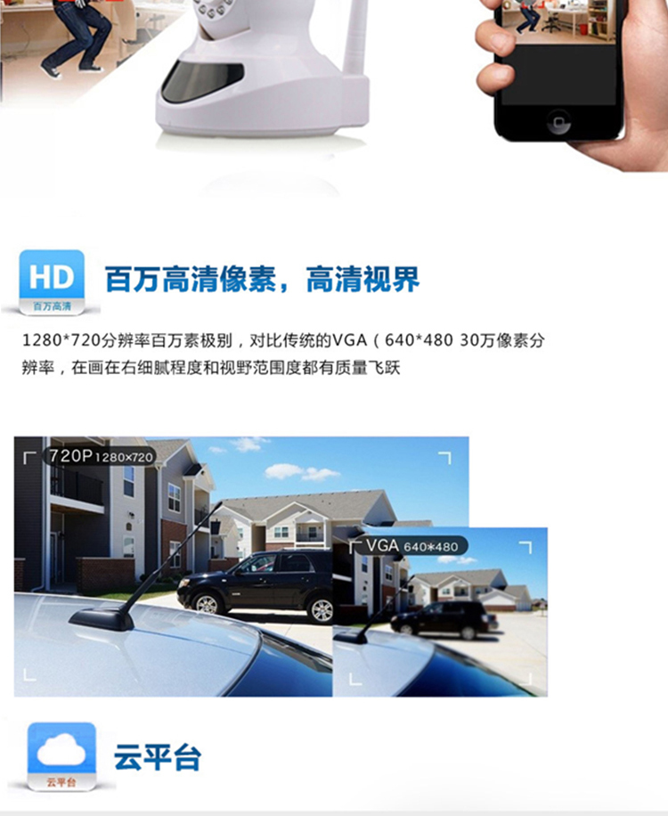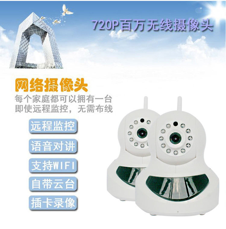 720p百万无线摄像头 远程监控语音对讲半球网络摄像机