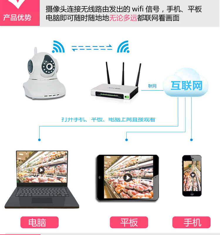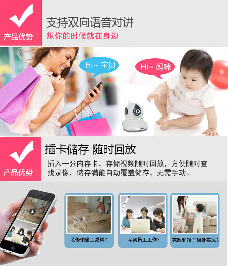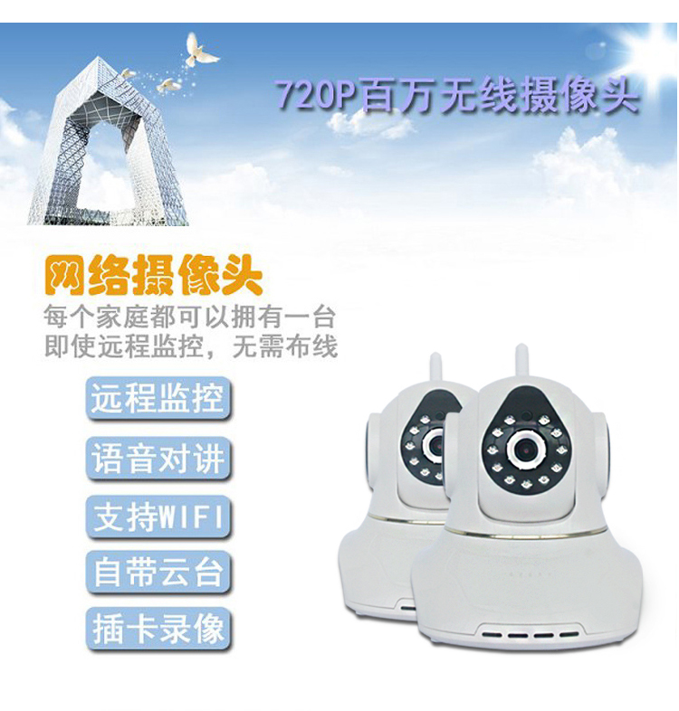 网络插卡一体机 智能WIFI无线远程IP监控摄像头 720P摇头机