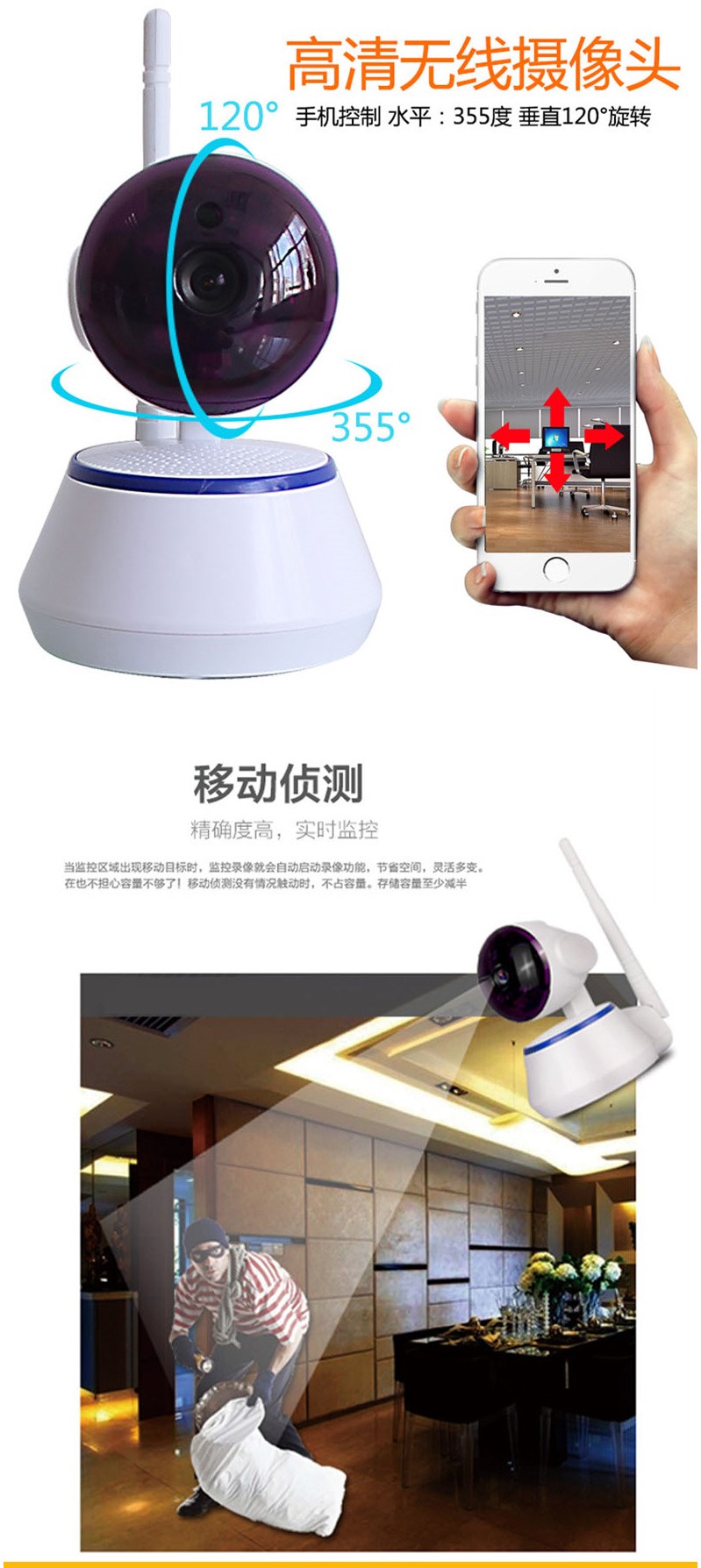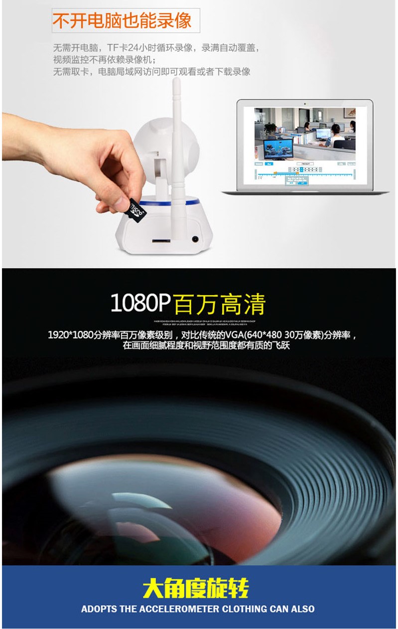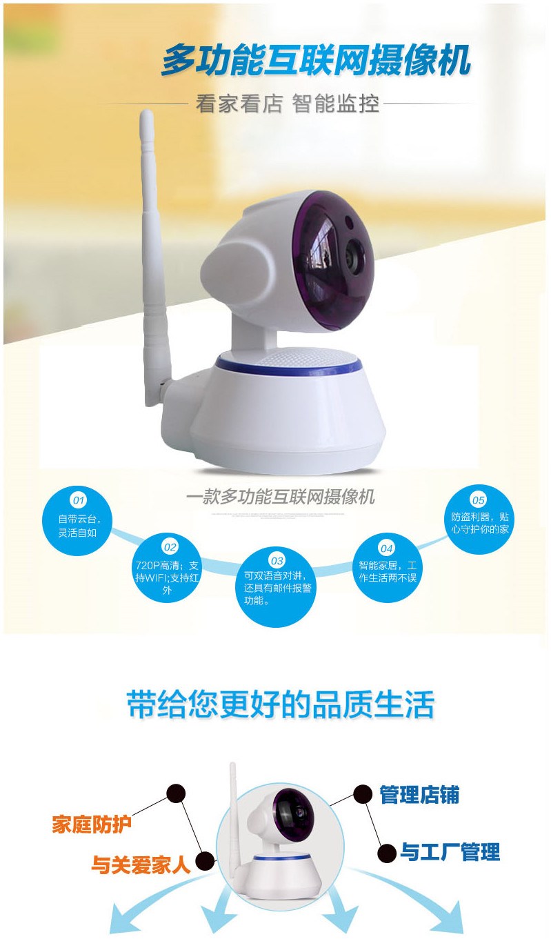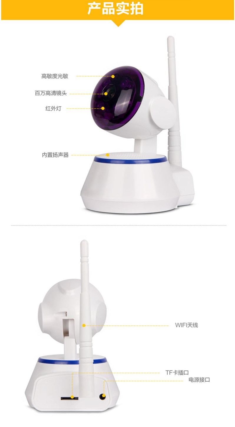 无线监控器wifi 高清夜视网络摄像头 智能安防手机监控 摇头机