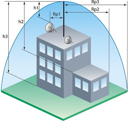LPI的提前放电避雷针能够提供两种不同保护范围的型号。