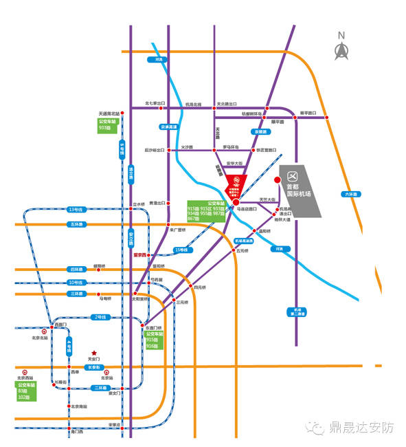 北京南站乘地铁4号线——宣武门站换乘地铁2号线——(往和平门方向)东直门站换乘地铁13号线——望京西站换乘地铁15号线——新国展站下车即到。