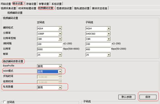 媒体设置--视频编码设置--高级编码参数设置--WDR模式--启用