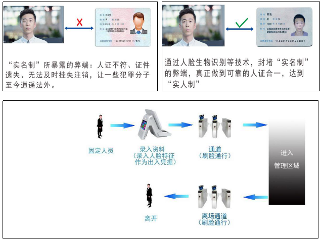 随着新技术的发展,特别是人脸识别、指纹识别、虹膜识别等生物识别技术的不断成熟,实名登记的弊端通过这些更先进的技术被有效地封堵,实现了更加可靠的人证合一,达到“实人制”的效果。