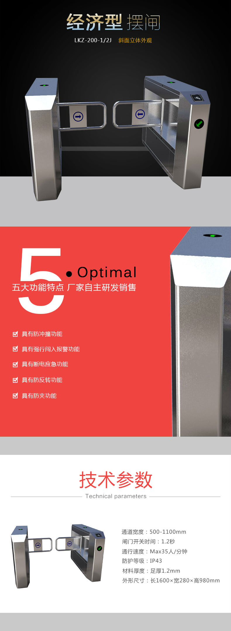 来吉斜面立体摆闸门禁系统 智能通道闸