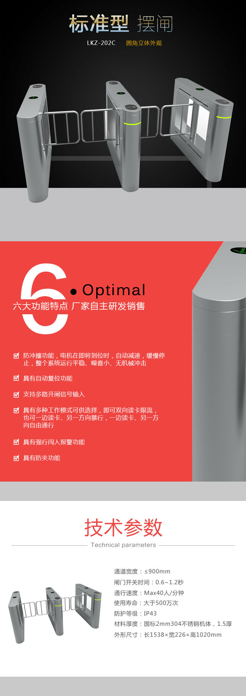 来吉立式考勤门禁智能电动摆闸 刷卡感应电动闸机 智能人行通道摆闸